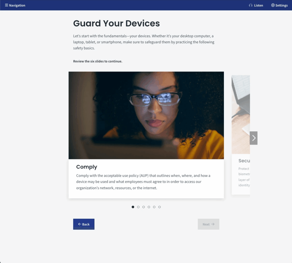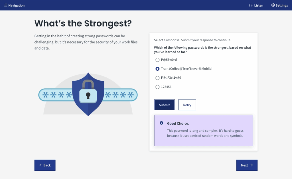 Our highly interactive data security course for employees will engage and educate your workforce on critical skills like: