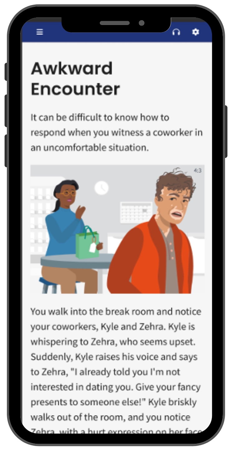 This online workplace discrimination prevention training fosters and empowers proactive behaviors that will improve communication and relationships in your organization. It uses proven techniques like bystander intervention and allyship to up-skill your workforce in preventing harassment and discrimination before it begins.